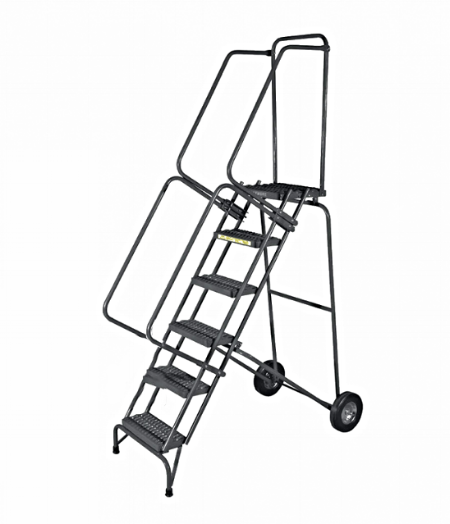 Rolling ladders have a safety factor of 4 which means they must be able to support loads four times the anticipated rating. They are able to support at least 300 pounds to account for the worker and tools as well.